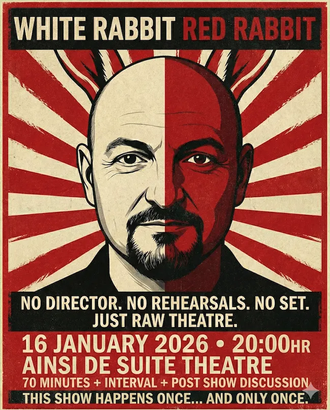 Pour une nuit seulement – le 16 janvier 2026 à 20 heures – découvrez le phénomène mondial White Rabbit Red Rabbit au Ainsi de Suite Theatre.